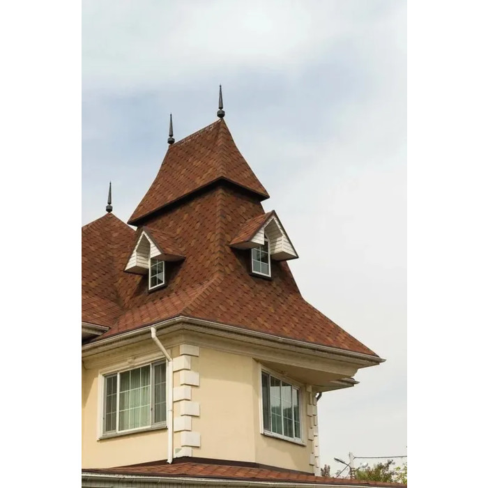 В продаже гибкая черепица торговой марки Технониколь Шинглас представлена однослойными изделиями, а также ламинированными 2- и 3-слойными изделиями. В нашем каталоге есть гонты с нарезкой в виде пчелиных сот, прямоугольников, «хвоста бобра», «драконьего зуба». Они не выгорают на солнце, обладают повышенной устойчивостью к механическим и ветровым воздействиям, влаге, перепадам температуры. Небольшие размеры этого кровельного материала делают его монтаж очень простым и быстрым, а также ремонтопригодным.